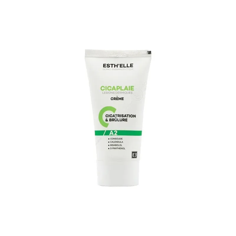 ESTHELLE CICAPLAIE A2 est une crème grasse réparatrice et cicatrisante, en format économique de 50g, spécifiquement indiquée pour la prise en charge des plaies, des brûlures légères et des lésions cutanées. Elle est formulée pour être hypoallergénique et sans paraben, assurant une très bonne tolérance, y compris pour les peaux les plus sensibles. Sa texture grasse crée un environnement humide optimal sur la plaie, ce qui est essentiel pour accélérer la régénération épidermique et améliorer la qualité de la réparation cutanée. Elle possède un fort pouvoir anti-inflammatoire grâce à son cocktail de plantes, ce qui soulage immédiatement la douleur, les sensations d'inconfort et les démangeaisons. En assainissant, hydratant et nourrissant l'épiderme lésé, elle contribue à la reconstruction de l'intégrité de la peau et prévient efficacement la formation de cicatrices inesthétiques (chéloïdes et hyperpigmentation). Elle offre également une protection contre les agressions extérieures et le dessèchement.