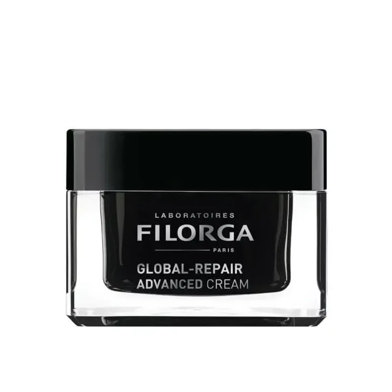 La FILORGA GLOBAL-REPAIR ADVANCED CREAM 50 ML est une crème anti-âge absolue, conçue pour corriger intensément tous les signes du vieillissement cutané, même les plus avancés. Ce soin de 50 ml s'adresse aux peaux matures et dévitalisées, offrant une action globale et ultra-concentrée inspirée des techniques de médecine esthétique. Au cœur de sa formule, le NCEF (New Cellular Encapsulated Factors), complexe polyrevitalisant signature de Filorga, est présent dans une concentration inédite. Ce complexe de 50 ingrédients essentiels (vitamines, acides aminés, minéraux, co-enzymes, antioxydants) stimule la régénération cellulaire et améliore globalement la qualité de la peau. La crème intègre également le facteur de réparation intense (IRI), un complexe breveté qui combine des céramides, omégas et vitamines pour restaurer la barrière cutanée, nourrir intensément et apporter un confort suprême. Des actifs liftants et raffermissants agissent en synergie pour redéfinir l'ovale du visage et améliorer la densité cutanée. Des agents uniformisants contribuent à réduire les taches et à redonner de l'éclat. Sa texture riche et enveloppante fond sur la peau, offrant une sensation de bien-être et de luxe. Jour après jour, la peau est visiblement plus lisse, plus ferme, plus dense, unifiée et lumineuse, les rides sont estompées et le teint retrouve sa vitalité.