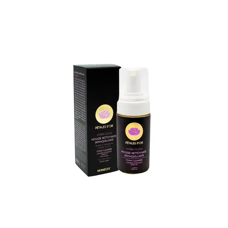 HERBEOS HYDRA GLOW MOUSSE NETTOYANTE DEMAQUILLANTE est un soin 2-en-1 conçu pour un nettoyage et un démaquillage quotidiens tout en douceur, idéal pour les peaux recherchant hydratation et éclat. Sa mousse riche et fine agit efficacement pour éliminer le maquillage, les impuretés et les résidus de pollution sans décaper l'épiderme. Enrichie en actifs hydratants et régénérants comme l'acide hyaluronique et l'eau florale de Rose de Damas, elle respecte l'équilibre naturel de la peau. Utilisée quotidiennement, elle aide à affiner visiblement le grain de peau, laissant le teint plus clair, lumineux et la peau souple et confortable. Sa formule est à 99% naturelle et respectueuse de la clean beauty.