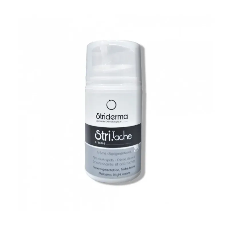 La STRIDERMA STRI TACHE CRÈME est un soin dépigmentant intensif, souvent utilisé comme crème de nuit, spécialement conçu pour cibler et corriger les taches brunes (hyperpigmentation) du visage, tout en prévenant leur réapparition.