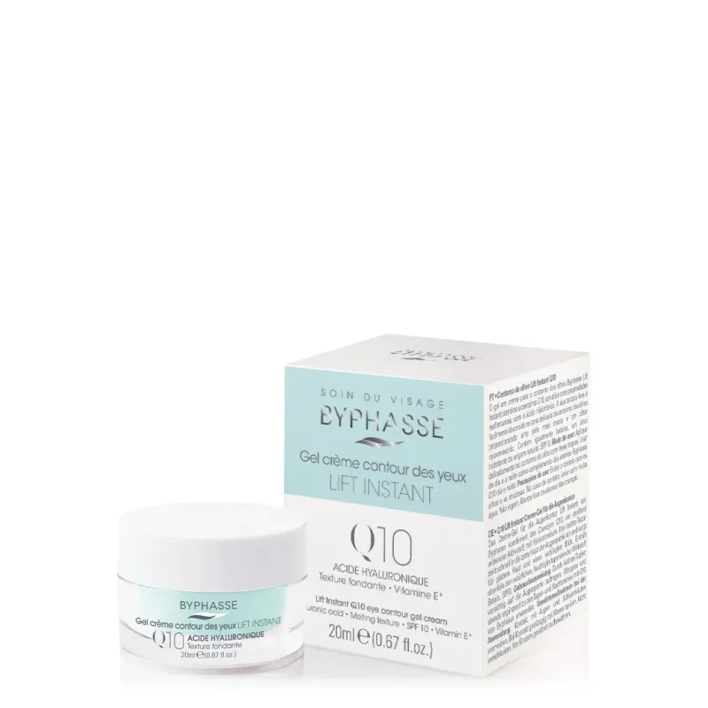 Le gel-crème lift instantané au Q10 de Byphasse est un soin spécialement formulé pour le contour des yeux, une zone particulièrement fragile et sujette aux signes de l'âge. Sa texture légère et fraîche, qui se fond sur la peau, est enrichie en coenzyme Q10, un antioxydant puissant qui aide à réduire l'apparence des rides et des ridules. Il procure un effet tenseur immédiat, améliore l'élasticité de la peau et aide à atténuer les poches et les cernes. Ce soin hydrate en profondeur sans laisser de film gras, laissant la peau du contour de l'œil douce, lisse et visiblement plus lumineuse et plus jeune. C'est le soin idéal pour une routine quotidienne afin de revitaliser le regard et de lutter contre le vieillissement prématuré.