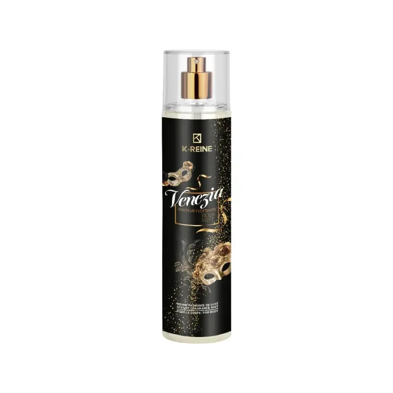 Brume de luxe K-REINE 230ML Venizia pour cheveux et corps, enrichie en Aloe Vera et Provitamine B5, hydrate instantanément et laisse un parfum raffiné de longue durée pour une peau douce et des cheveux brillants.