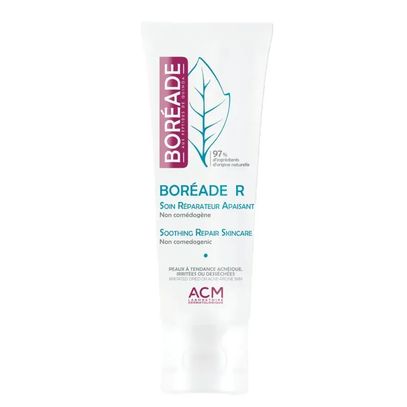 Le Soin Réparateur Apaisant Boréade R d'ACM est une crème compensatrice conçue pour apporter hydratation, apaisement et réparation aux peaux mises à rude épreuve par des traitements dermatologiques intensifs contre l'acné. Ces traitements peuvent souvent entraîner sécheresse, tiraillements, irritations et desquamation.