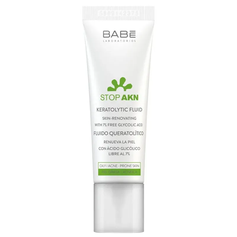 Le BABÉ Stop AKN Fluide Kératolytique (souvent sous le nom de Gel Contrôle Localisé ou Blemish Control Gel) est un soin de choc spécifiquement conçu pour le traitement intensif et localisé des imperfections (boutons, papules, pustules). Grâce à son action kératolytique élevée, il favorise l'élimination des cellules mortes, désobstrue les pores et accélère le processus de maturation et de disparition des boutons isolés. Il possède également des propriétés asséchantes pour réduire la taille des lésions actives et des actifs apaisants pour diminuer la rougeur et l'irritation qui les accompagnent, permettant un apaisement instantané.
