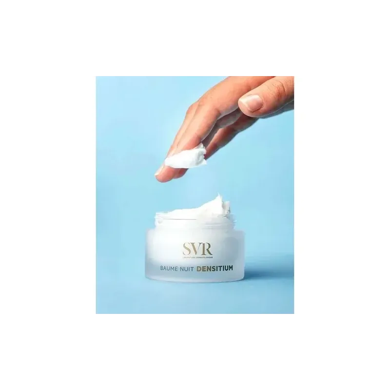 Le baume de nuit DENSITIUM BAUME NUIT de SVR est un soin anti-âge global spécialement conçu pour les peaux matures et dévitalisées qui présentent un manque de densité et un relâchement cutané. Sa formule est enrichie en actifs dermatologiques puissants, incluant du bio-calcium, un complexe minéral qui agit en profondeur pour redensifier la peau et restaurer son élasticité. L'acide hyaluronique ultra-fragmenté hydrate et repulpe la peau, comblant les rides et ridules de l'intérieur. Ce soin contient également une concentration élevée de probiotiques et de beurre de karité. Les probiotiques renforcent le microbiome cutané et la barrière de la peau pendant la nuit, tandis que le beurre de karité nourrit intensément, apaisant les peaux les plus sèches. Sa texture baume, riche et onctueuse, procure un confort immédiat et durable. Appliqué le soir, il travaille activement pendant le sommeil pour une peau régénérée, plus ferme et visiblement plus lumineuse au réveil.