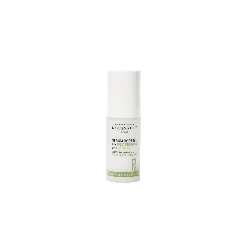 Le NOVEXPERT SERUM BOOSTER AUX POLYPHÉNOLS DE THÉ VERT 30ML est un sérum hautement concentré, 3-en-1, agissant à la fois en prévention et en correction des taches pigmentaires, mais aussi sur l'éclat du teint et les signes de l'âge. Sa formule unique est basée sur les polyphénols de Thé Vert (EGCG), l'antioxydant le plus puissant de la plante, sélectionné par les Docteurs Novexpert pour sa stabilité et son efficacité. Il cible tous les types de taches (liées au soleil, à la pollution, au stress ou à la sensibilité cutanée) en agissant sur les causes externes et internes. Il intègre également une action biomimétique en stimulant une protéine cutanée naturellement responsable de l'absence de taches. Ce sérum délivre une action anti-âge en boostant la synthèse de collagène, ce qui en fait un soin complet pour un teint uniforme, lumineux et visiblement plus jeune. Il est 100% d'origine naturelle et convient à tous, y compris aux femmes enceintes et allaitantes, notamment pour aider à réduire le mélasma.