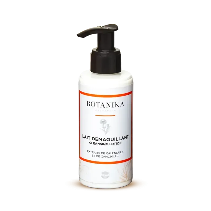 Lait démaquillant visage (150ml) BOTANIKA à la texture soyeuse. Formulé avec de l'huile d'argan, de la camomille et du calendula, il nettoie en douceur, démaquille parfaitement et apaise la peau, lui procurant un réconfort immédiat.