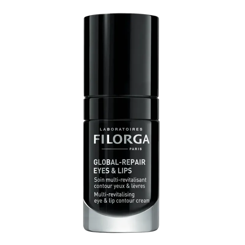 Le FILORGA GLOBAL-REPAIR EYES & LIPS 15ML est un soin anti-âge global d'exception, spécifiquement conçu pour cibler et corriger les signes de vieillissement intenses du contour des yeux et des lèvres. Ce pot de 15 ml offre une action ultra-revitalisante et multi-correctrice, inspirée des techniques de médecine esthétique. Sa formule exclusive combine les meilleurs actifs pour une efficacité globale. Elle intègre le facteur de réparation intense (IRI), un complexe breveté qui associe des céramides, omégas et vitamines pour restaurer la barrière cutanée et nourrir intensément la peau fine et fragile de ces zones. Le cœur de sa formule réside dans le NCEF (New Cellular Encapsulated Factors), le complexe polyrevitalisant signature de Filorga, ici dans une concentration optimale, pour stimuler la régénération cellulaire et améliorer globalement la qualité de la peau. Des actifs spécifiques au contour des yeux et des lèvres complètent cette action : de l'extrait de tubéreuse pour décongestionner les poches et estomper les cernes, ainsi qu'un booster de volume pour redéfinir le contour des lèvres et lisser les ridules péri-orales. Sa texture riche et fondante est incroyablement confortable, enveloppant la peau d'un voile de douceur. Le résultat est une réduction visible des rides profondes, des cernes et poches estompées, des lèvres repulpées et un contour visiblement rajeuni et redensifié.