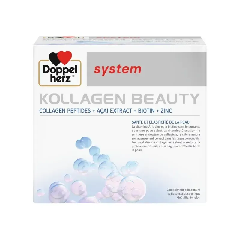 AKTIV KOLLAGEN BEAUTY est un complément alimentaire sous forme de doses individuelles à boire, conçu pour améliorer la beauté de la peau, des cheveux et des ongles de l'intérieur. Sa formule unique contient des peptides de collagène, de la vitamine C, de la vitamine E, du cuivre, du zinc, du sélénium, de la biotine et des extraits de baies d'açaï. Le collagène, protéine essentielle à la structure de la peau, est ici sous une forme hautement biodisponible pour une meilleure absorption. Ce complément agit pour réduire les rides, améliorer l'élasticité de la peau, renforcer les cheveux et les ongles.