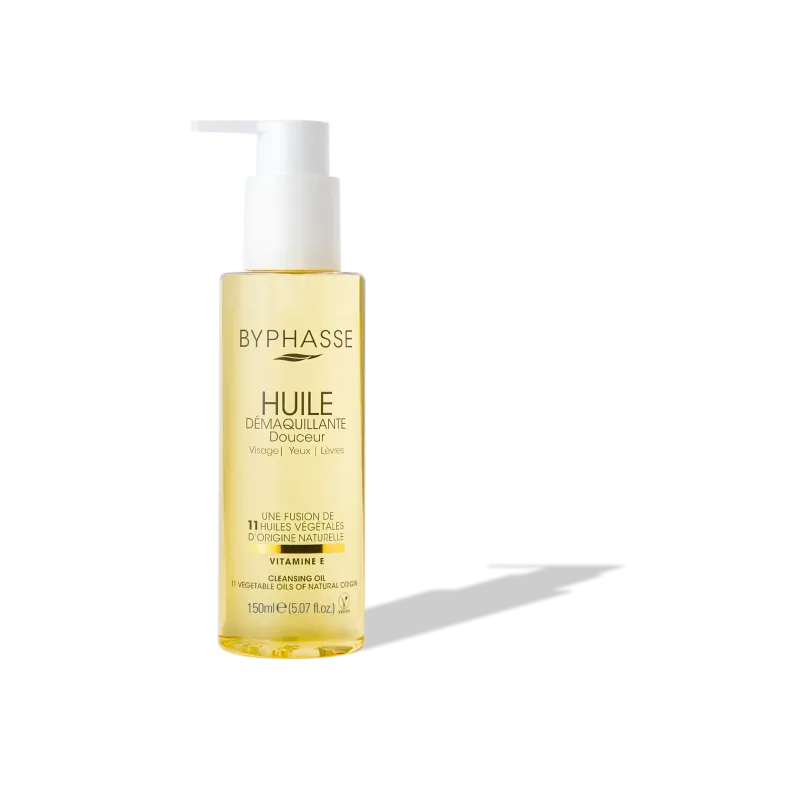 L'HUILE DÉMAQUILLANTE DOUCEUR BYPHASSE 150ML est un soin nettoyant et démaquillant pour le visage, les yeux et les lèvres, formulé pour éliminer efficacement tout type de maquillage, même waterproof, tout en douceur. Sa formule est une fusion de 11 huiles végétales d'origine naturelle, pour une composition à 93% d'ingrédients d'origine naturelle. Elle possède une texture légère et soyeuse qui se dissout au contact du maquillage et s'émulsionne au contact de l'eau, permettant un rinçage facile et sans laisser de fini gras résiduel. Enrichie en actifs nourrissants et hydratants comme la Vitamine E et les huiles végétales, elle prévient la déshydratation et laisse la peau propre, douce et confortable, sans aucune sensation de tiraillement. Elle est certifiée vegan (V-Label) et sa tolérance a été testée sous contrôle dermatologique et ophtalmologique.