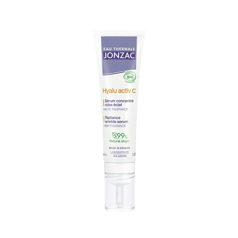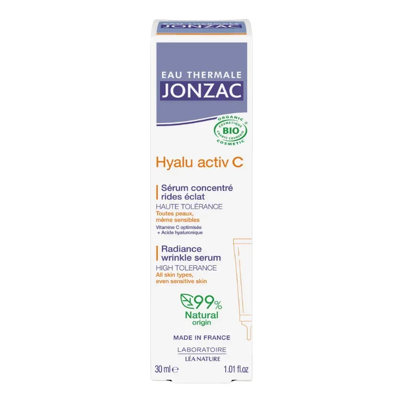 Le Jonzac Hyalu Activ C Sérum Concentré Rides Éclat 30ml est un soin anti-âge et illuminateur innovant, spécialement formulé pour cibler les signes de l'âge tels que les rides et le manque d'éclat, tout en respectant les peaux sensibles. Ce sérum concentré combine la puissance de l'Eau Thermale de Jonzac, reconnue pour ses vertus apaisantes et régénérantes, avec des actifs hautement efficaces comme l'Acide Hyaluronique Fragmenté et la Vitamine C stabilisée. Sa texture légère et pénétrante permet une absorption rapide, laissant la peau lisse, hydratée et visiblement plus lumineuse. C'est un allié essentiel pour revitaliser le teint et réduire l'apparence des rides, même sur les peaux les plus délicates.