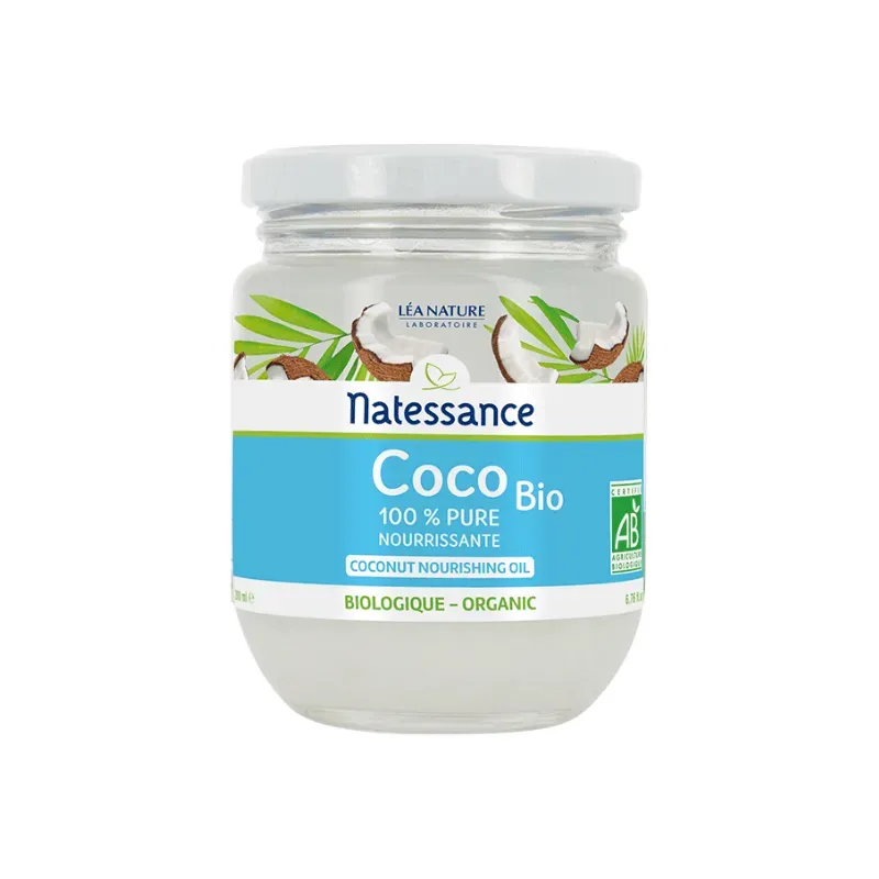 L'Huile de Coco Bio Natessance est un produit multi-usages emblématique, 100% pur, qui se distingue par sa polyvalence d'utilisation : en cosmétique (corps, visage, cheveux) et en cuisine (alimentation). Elle est obtenue par première pression à froid de la pulpe fraîche de noix de coco (Cocos Nucifera (Coconut) oil) issue de l'Agriculture Biologique, garantissant ainsi qu'elle conserve toutes ses propriétés nutritives, son parfum subtil et ses qualités d'huile vierge. Elle se solidifie naturellement en dessous de 25°C, ce qui est un gage de pureté.
