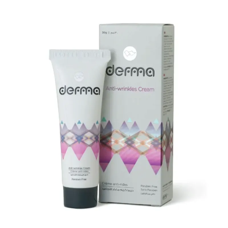 DERMA CRÈME ANTI-RIDES est un soin visage concentré présenté dans un tube ou un pot de 30 ml. Cette crème est formulée pour cibler les signes visibles du vieillissement cutané, tels que les rides, les ridules et la perte de fermeté. Elle combine des ingrédients actifs puissants (souvent du Rétinol, des Peptides, et/ou de l'Acide Hyaluronique) pour stimuler la production de collagène et d'élastine, améliorer l'hydratation, et renforcer la structure de la peau. Elle vise à lisser l'épiderme, à redensifier la peau et à procurer un effet rajeunissant global.