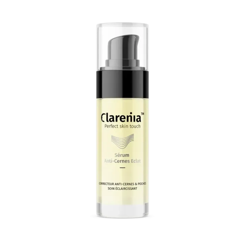 Le Sérum Anti-Cernes Éclat Clarenia est un soin ciblé, spécialement formulé pour les yeux, qui agit en profondeur pour corriger et prévenir l'apparition des cernes et des poches. Sa formule concentrée pénètre rapidement pour améliorer la micro-circulation sanguine, responsable des cernes bleutés et vasculaires. Enrichi en actifs éclaircissants et drainants, il aide à estomper les cernes pigmentaires (bruns) et à décongestionner les poches, tout en hydratant et en lissant le contour de l'œil. Résultat : un regard plus frais, lumineux et visiblement moins fatigué.