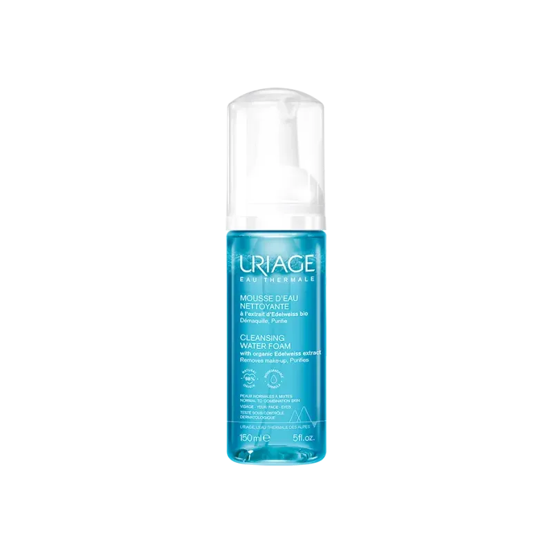 un nettoyant visage doux et aérien pour les peaux normales à mixtes. Elle purifie en douceur, élimine impuretés et maquillage, et révèle l'éclat du teint grâce à l'Eau Thermale d'Uriage, laissant la peau fraîche, matifiée et confortable.