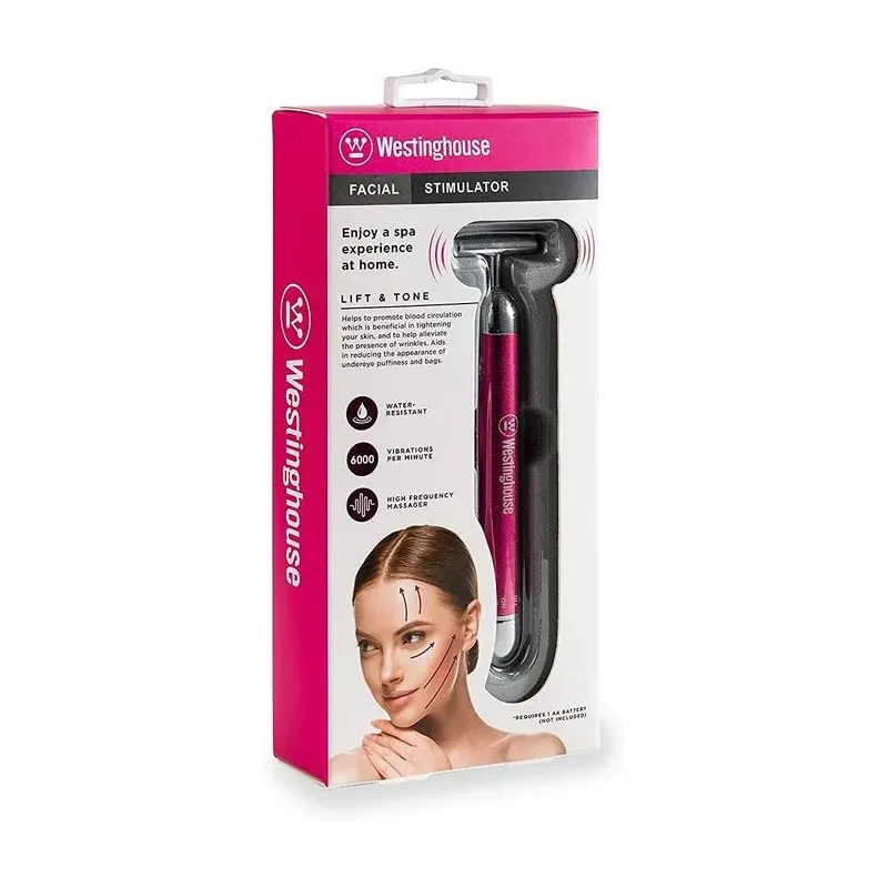 Le STIMULATEUR FACIAL WESTINGHOUSE est un appareil de massage du visage à haute fréquence, conçu pour revitaliser la peau et atténuer les signes de l'âge. Il utilise une technologie de vibration pour stimuler la microcirculation sanguine, ce qui contribue à raffermir la peau et à restaurer l'éclat du teint. Ce stimulateur est spécifiquement efficace pour aider à réduire l'apparence des rides et ridules, ainsi qu'à diminuer les poches sous les yeux. Son format est ultra-compact et léger, ce qui le rend facile à intégrer dans toute routine de soins et parfait pour être transporté en déplacement. Fonctionnant à l'aide d'une simple pile, il offre un soin anti-âge pratique et sans fil.