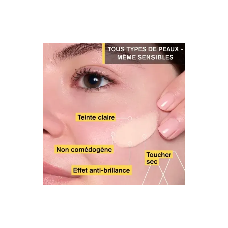 Unifie le teint : La teinte claire masque les imperfections et donne un fini naturel.