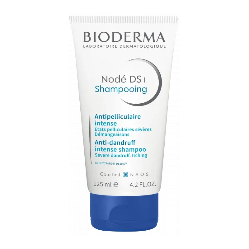 BIODERMA NODÉ DS+ SHAMPOOING ANTIPELLICULAIRE INTENSE 125ML est un shampooing dermatologique concentré, spécialement formulé pour le traitement des états pelliculaires sévères et récidivants (pellicules grasses ou sèches, démangeaisons intenses, rougeurs du cuir chevelu). Il agit en profondeur pour éliminer durablement les pellicules, apaiser les irritations et prévenir leur réapparition, grâce à une synergie d'actifs puissants et à une technologie brevetée.
