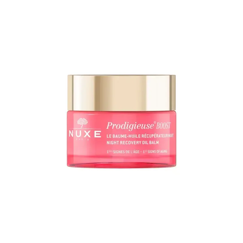 Le Baume-Huile Récupérateur Nuit Prodigieuse Boost de Nuxe est un soin de nuit innovant qui agit pendant le sommeil pour aider la peau à se régénérer après une journée intense. Ce baume unique combine les propriétés d'un baume ultra-réconfortant et d'une huile régénératrice, ciblant les premiers signes de l'âge et les effets du stress, de la fatigue et de la pollution.