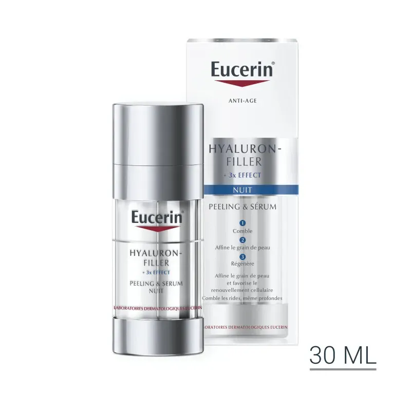 L'Eucerin Hyaluron-Filler Peeling & Sérum Nuit 30ML est indiquée pour :