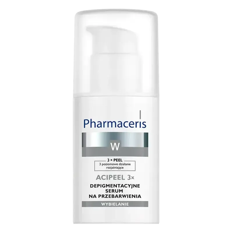 Sérum dépigmentant intensif pour le visage. Atténue visiblement les taches brunes (mélasma, solaires, post-inflammatoires) et unifie le teint grâce au complexe ACIPEEL 3X. Exfolie et stimule le renouvellement cellulaire pour une peau plus lumineuse. Application nocturne avec protection solaire obligatoire le jour. Convient aux peaux avec hyperpigmentation.