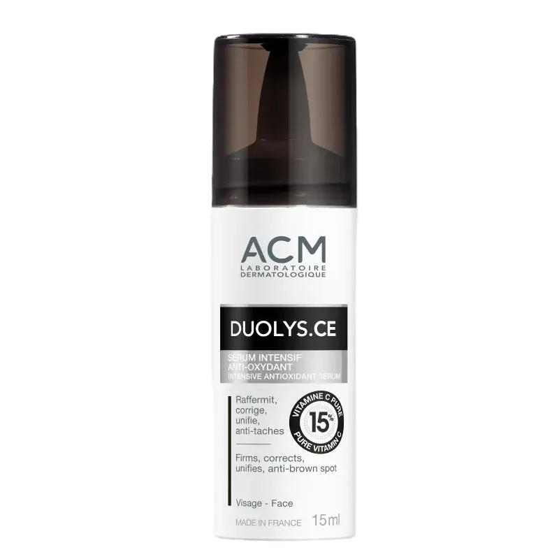 Le Sérum Intensif Anti-oxydant Duolys CE d'ACM est un soin puissant qui agit comme un bouclier protecteur pour la peau. Sa formule innovante combine des antioxydants majeurs pour une action complète contre le stress oxydatif, responsable du vieillissement cutané.