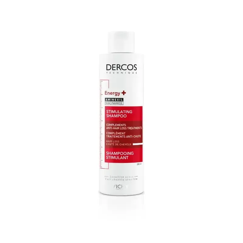 Le shampoing énergisant Dercos de Vichy est un soin capillaire fortifiant conçu pour réduire la chute de cheveux et renforcer les cheveux dévitalisés, fragiles et en manque de volume. Sa formule, enrichie en Aminexil et en vitamines (B5, B6 et PP), agit en profondeur pour ancrer le cheveu plus solidement dans le cuir chevelu et prévenir son affinement. Il nettoie en douceur, sans agresser, et prépare les cheveux à recevoir les soins anti-chute suivants. Sa texture légère et sa base lavante douce permettent un usage fréquent, et laissent les cheveux plus forts, plus denses et plus résistants.