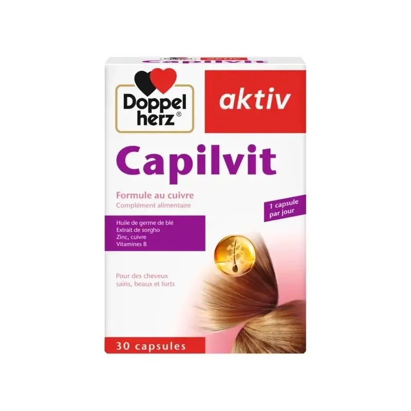 AKTIV CAPILVIT est un complément alimentaire conçu pour nourrir et renforcer les cheveux de l'intérieur. Sa formule unique combine des vitamines, des minéraux et des acides aminés essentiels qui agissent en synergie pour soutenir la croissance des cheveux, prévenir leur chute et améliorer leur état général. Ce complément est idéal pour les personnes confrontées à la chute de cheveux, à des cheveux ternes, fins ou cassants, et qui souhaitent retrouver une chevelure dense, forte et éclatante de santé.
