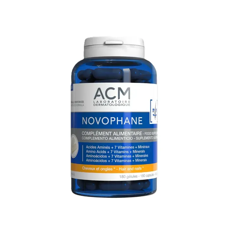 Les Gélules Novophane Ongles & Cheveux d'ACM sont un complément nutritionnel oral qui apporte un concentré d'éléments essentiels (vitamines, minéraux, acides aminés soufrés) pour nourrir et soutenir la croissance saine des phanères (cheveux et ongles) de l'intérieur. Il est particulièrement recommandé en cas de :