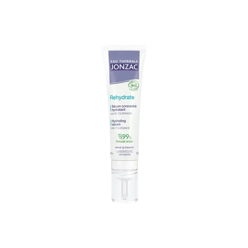 Le Jonzac Rehydrate Sérum Concentré Désaltérant 30ml est un soin hydratant intensif, conçu spécifiquement pour les peaux déshydratées, même sensibles, qui manquent de souplesse, de confort et d'éclat. Issu de la dermo-cosmétique bio, ce sérum offre une concentration maximale en actifs hydratants pour une action désaltérante profonde et immédiate. Sa formule unique est basée sur l'Eau Thermale de Jonzac (20%), reconnue pour ses propriétés apaisantes, régénérantes et isotoniques. Elle est associée à de l'Acide Hyaluronique naturel (de haut et de bas poids moléculaire) pour une hydratation multicouche, et à de la glycérine végétale, offrant ainsi un véritable "shot" d'hydratation qui repulpe la peau, lisse les ridules de déshydratation et révèle un teint frais et lumineux.