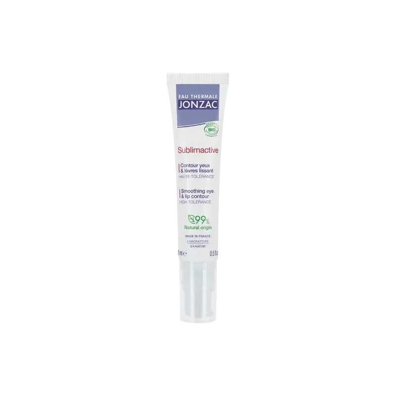 Le Jonzac Sublimactive Contour Yeux et Lèvres Anti-Âge 15ml est un soin ciblé et multi-actions, spécifiquement formulé pour les zones délicates et fragiles du contour des yeux et des lèvres, qui sont les premières à révéler les signes de l'âge. Idéal pour les peaux matures, même sensibles, ce soin d'exception lutte contre les rides, la perte de fermeté et le manque d'éclat. Issu de la dermo-cosmétique bio, sa formule unique est hautement concentrée en Eau Thermale de Jonzac (20%), reconnue pour ses propriétés isotoniques, apaisantes, régénérantes et anti-inflammatoires. Elle agit en synergie avec de l'Acide Hyaluronique fragmenté pour un effet repulpant intense, un postbiotique (Lactobacillus Ferment) qui renforce la barrière cutanée, et de l'eau florale de bleuet bio pour ses vertus décongestionnantes et apaisantes sur le contour des yeux. Les signes de fatigue et de vieillissement sont visiblement réduits pour un regard et un sourire rajeunis.