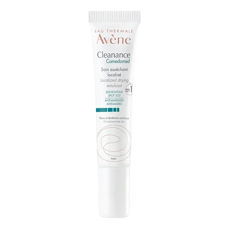L'Avène Cleanance Comedomed Soin Asséchant Localisé 15ml est un soin "SOS" ciblé pour les peaux grasses à tendance acnéique. Il assèche et résorbe rapidement les boutons (dès 1 jour) tout en limitant les marques résiduelles, grâce à ses actifs comme le Comedoclastin™, le Rétinaldéhyde, l'Acide Glycolique et l'Eau Thermale d'Avène. Son embout canule permet une application précise pour une peau plus nette et unifiée.