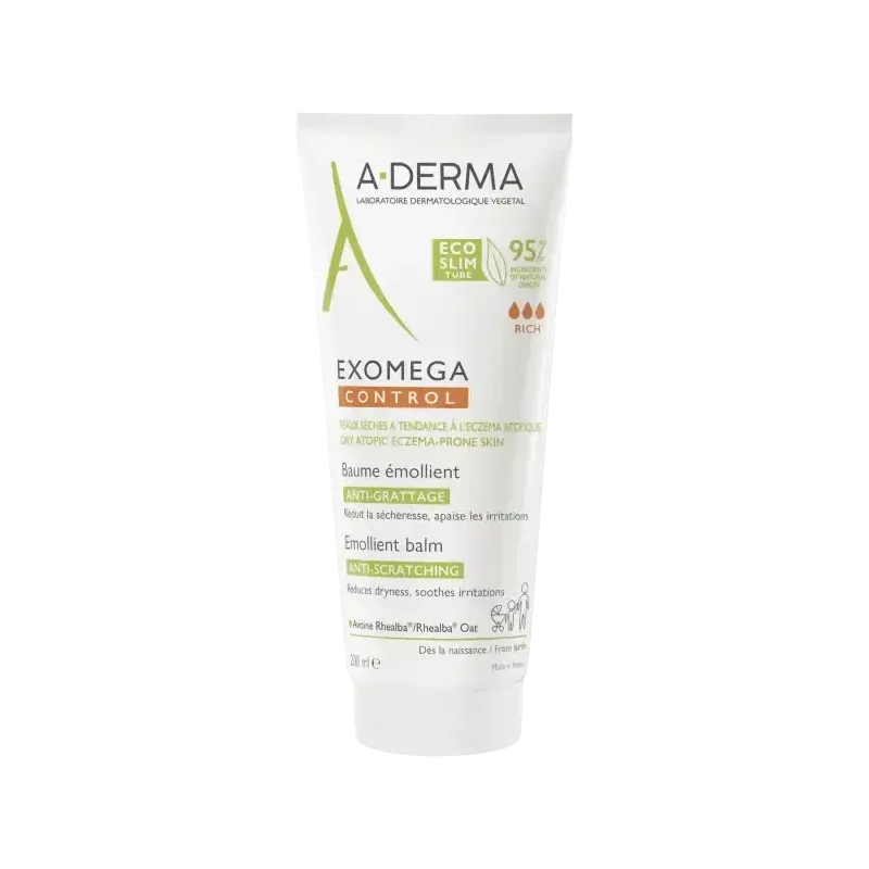 Le A-DERMA EXOMEGA CONTROL BAUME ÉMOLLIENT 200ML est un soin quotidien conçu pour répondre aux besoins spécifiques des peaux sèches à très sèches et à tendance atopique (eczéma). Sa formule onctueuse, ultra-riche et anti-grattage procure un effet triplement apaisant pour calmer les démangeaisons, réduire les rougeurs et espacer les pics d'irritation. Grâce à une application quotidienne unique, ce baume assure une hydratation profonde et durable (24h) tout en renforçant la barrière cutanée et en aidant à rééquilibrer le microbiome de la peau. Formulé avec 95% d'ingrédients d'origine naturelle et sans parfum, il offre une très haute sécurité et est adapté pour toute la famille, dès la naissance.