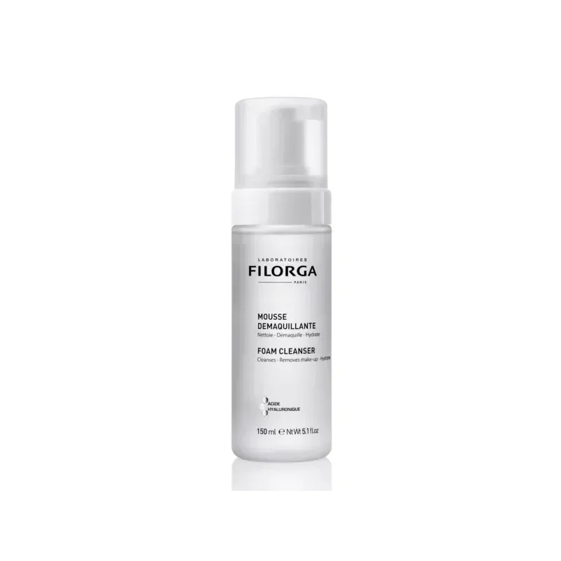La FILORGA MOUSSE DÉMAQUILLANTE 150ML est une mousse nettoyante et démaquillante qui offre une triple action : elle nettoie la peau en profondeur, démaquille efficacement et prépare la peau à recevoir les soins. Ce flacon-pompe de 150 ml est idéal pour un usage quotidien et convient à tous les types de peaux, y compris les plus sensibles. Sa texture légère et aérienne se transforme en une mousse onctueuse au contact de l'eau, rendant le nettoyage doux et agréable. Au cœur de sa formule, elle contient de l'acide hyaluronique, reconnu pour ses propriétés hydratantes et repulpantes. Cet actif aide à maintenir l'équilibre hydrique de la peau pendant le nettoyage, évitant ainsi toute sensation de tiraillement. La mousse démaquillante élimine efficacement le maquillage, même tenace, ainsi que les impuretés et les particules de pollution, laissant la peau parfaitement propre et fraîche. Elle est conçue pour respecter le film hydrolipidique de la peau, la laissant douce, souple et apaisée.