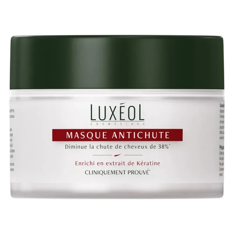 Le Masque Anti-Chute Luxéol 200ml est un soin capillaire intensif conçu pour lutter contre la chute des cheveux et les renforcer de la racine aux pointes. Idéal pour les cheveux fragilisés et sujets à la chute, ce masque cible les mécanismes qui conduisent à la perte de cheveux tout en nourrissant et en revitalisant la fibre capillaire. Sa formule riche pénètre en profondeur pour fortifier le cheveu, réduire la casse et améliorer la résistance. En complément des autres soins antichute (shampooing, sérum, compléments alimentaires), ce masque aide à retrouver une chevelure plus dense, plus épaisse et visiblement plus saine. Il facilite également le démêlage et apporte douceur et brillance sans alourdir.