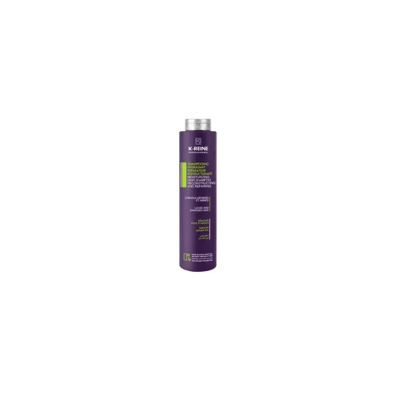 Le K-REINE Shampoing Réparateur nettoie délicatement et respecte les cheveux sensibilisés. Il reconstitue la matière interne de la fibre capillaire. Il nourrit et hydrate en profondeur, apportant douceur et brillance. Sa formule est sans sulfate (SLS) et sans sel (chlorure de sodium), idéale pour prolonger les lissages brésiliens et protéger les cheveux colorés. Il renforce les cheveux fragilisés et réduit la casse grâce à la kératine hydrolysée et à l'huile d'argan.