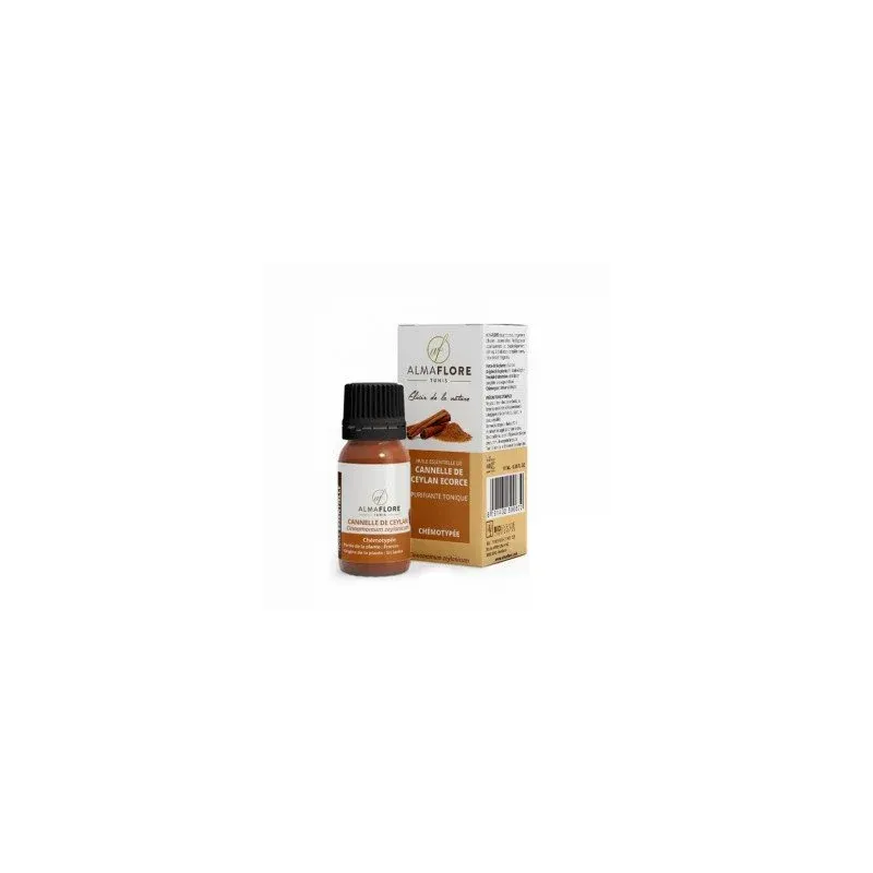 ALMAFLORE Huile Essentielle (H.E.) de Cannelle de Ceylan (Écorce) 10 ml est obtenue par distillation à la vapeur des écorces du cannelier de Ceylan (Cinnamomum zeylanicum). Sa composition biochimique est dominée par les aldéhydes aromatiques (principalement le Cinnamaldéhyde), ce qui lui confère une puissance exceptionnelle dans le domaine de l'aromathérapie. Elle est considérée comme un anti-infectieux majeur à très large spectre (antibactérien, antiviral, antifongique et antiparasitaire). C'est également un tonique général et sexuel très efficace. En raison de sa concentration élevée en Cinnamaldéhyde, elle est extrêmement caustique pour la peau et les muqueuses et son utilisation est fortement limitée et encadrée.