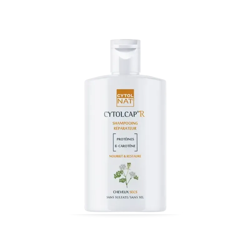 Le Shampooing Réparateur CYTOLCAP R de Cytolnat est un soin d'hygiène capillaire spécialement formulé pour les cheveux secs, très secs et abîmés. Sa formule, enrichie en actifs nourrissants et réparateurs, nettoie délicatement le cuir chevelu et la fibre capillaire, tout en agissant en profondeur pour restaurer l'hydratation et la souplesse. Il aide à réparer les dommages causés par la sécheresse, les traitements chimiques ou les agressions extérieures, laissant les cheveux doux, brillants et revitalisés de la racine aux pointes.