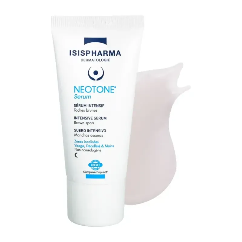Le ISISPHARMA NEOTONE SÉRUM INTENSIF NUIT 30ML est un soin dépigmentant intensif spécifiquement formulé pour réduire visiblement tous les types de taches brunes, qu'elles soient dues au soleil, à l'âge, aux hormones (masque de grossesse) ou à l'hyperpigmentation post-inflammatoire. Ce sérum de 30 ml agit pendant la nuit, moment clé de la régénération cutanée, pour unifier et illuminer le teint.