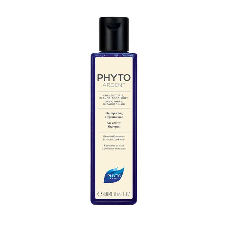 Le PHYTO ARGENT SHAMPOOING DÉJAUNISSANT 250ML est un shampoing traitant spécialement conçu pour les cheveux blancs, gris et blonds (platine, méchés, décolorés). Il neutralise efficacement les reflets jaunes et cuivrés indésirables, qui peuvent ternir l'éclat des cheveux clairs, tout en apportant brillance, douceur et vitalité à la chevelure.