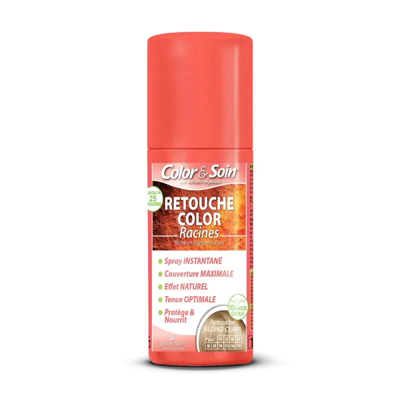 3 CHENES COLOR & SOIN SPRAY RETOUCHE BLOND CLAIR 75 ML est un spray colorant instantané conçu pour masquer temporairement les racines apparentes et les cheveux blancs entre deux colorations permanentes. Il s'inscrit dans la gamme Color & Soin des Laboratoires Les 3 Chênes, reconnue pour ses formules plus respectueuses du cheveu.