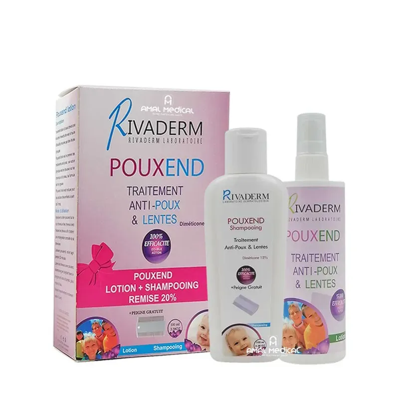 🎁 Le RIVADERM COFFRET POUXEND ANTI POUX ET LENTES est un kit de traitement complet destiné à éliminer efficacement les poux et les lentes du cuir chevelu. Il propose une approche sans insecticide, privilégiant une action physique douce mais redoutable pour étouffer et déshydrater les parasites. Ce coffret est conçu pour une utilisation familiale et contient généralement deux produits complémentaires (une lotion et un shampooing) pour un traitement en deux étapes.