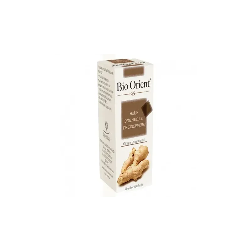 L'Huile Essentielle de Gingembre de Bio Orient est une huile 100% pure et naturelle, obtenue par distillation complète par entraînement à la vapeur d'eau du rhizome de la plante (Zingiber officinale). Caractérisée par son chémotype dominé par le Zingibérène, elle est réputée pour ses propriétés toniques, stimulantes et antalgiques. C'est une alliée précieuse pour le système digestif (lutte contre les nausées, digestion difficile) et pour soulager les douleurs musculaires et articulaires grâce à son action anti-inflammatoire et réchauffante. Son parfum chaud, épicé et légèrement citronné en fait également un tonique général, très efficace contre la fatigue physique et nerveuse.