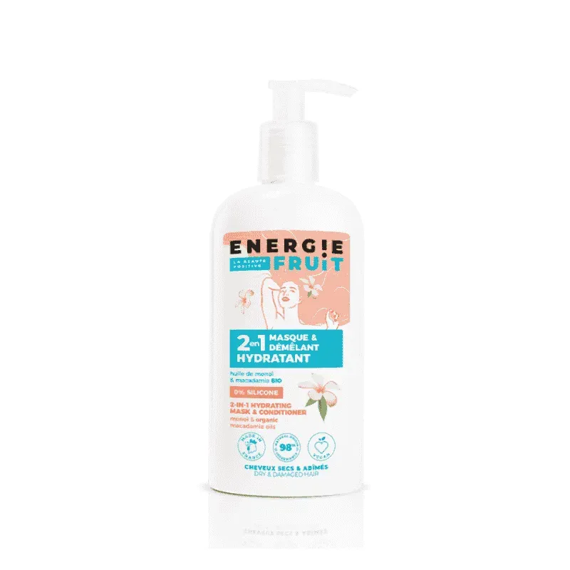 Le MASQUE 2EN1 HYDRATANT d'Energie Fruit est un soin capillaire à double usage, spécialement conçu pour les cheveux secs, très secs et abîmés en quête de nutrition et de souplesse. Sa formule riche et sa texture baume enveloppante sont enrichies en Huile de Macadamia Bio et en Monoï, assurant un boost d'hydratation et de nutrition instantané et profond. Ce soin 2-en-1 s'utilise comme un après-shampoing démêlant rapide ou comme un masque nourrissant prolongé. Composé à 98% d'ingrédients d'origine naturelle et Vegan, il pénètre instantanément dans la fibre capillaire sans laisser de film gras. Il rend les cheveux doux, souples, brillants et délicatement parfumés aux notes estivales de fleur de Tiaré (Monoï).