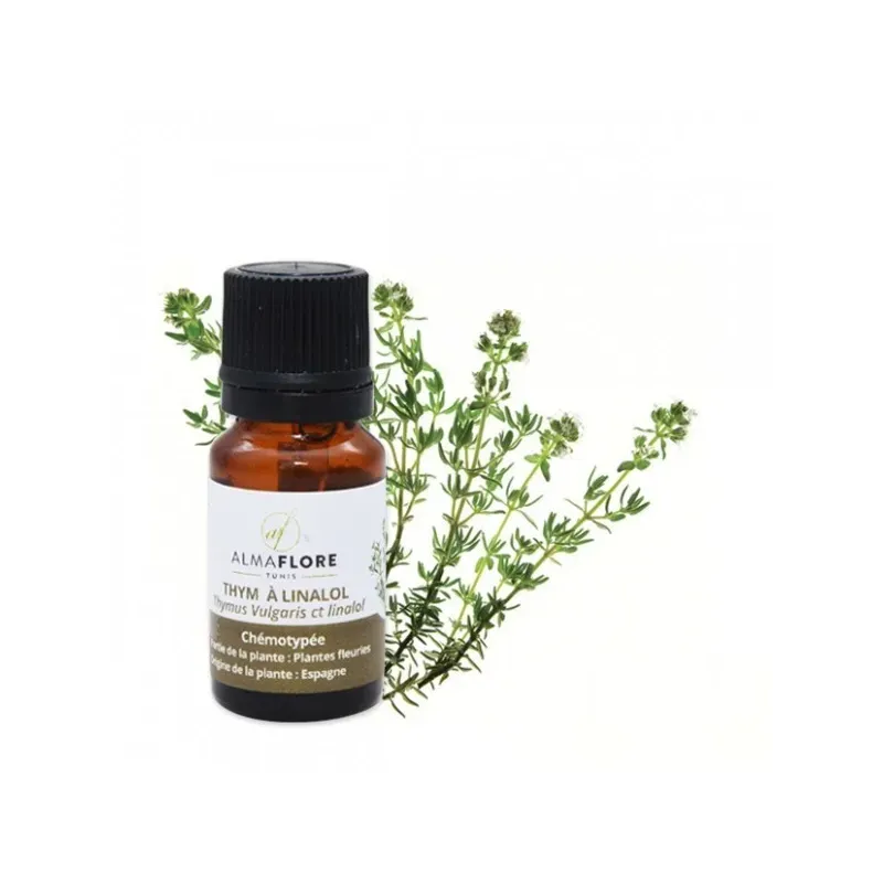 L'ALMAFLORE Huile Essentielle de Thym à Thymol (Thymus vulgaris CT thymol) est une huile essentielle pure et naturelle de 10 ml, reconnue comme l'une des anti-infectieuses à large spectre les plus puissantes. Le chémotype "Thymol" indique une forte concentration en phénols (principalement le thymol et le carvacrol), des molécules qui lui confèrent une action antibactérienne, antivirale, antifongique et antiparasitaire exceptionnelle. Ce concentré est un allié précieux en cas d'infections sévères ou récidivantes touchant les sphères respiratoires (bronchite), digestives, urinaires et cutanées. Elle est également un excellent tonique général et stimulant immunitaire, agissant efficacement contre la fatigue liée aux infections ou à la convalescence.