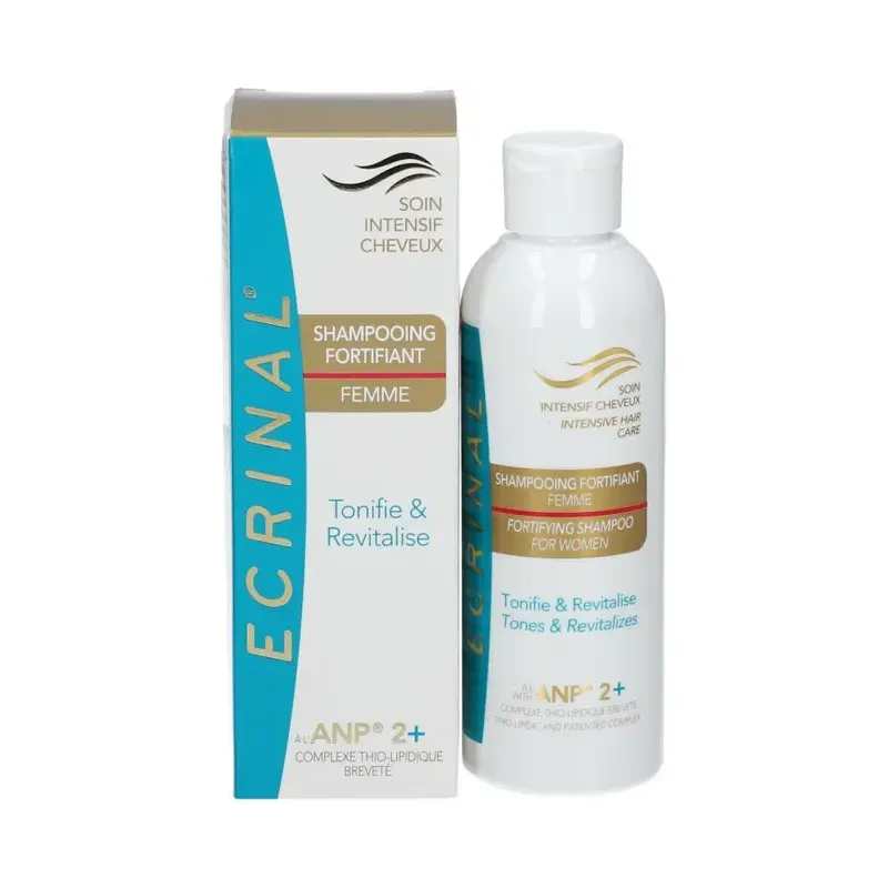 Le Shampooing Anti-Chute Femme ECRINAL est un soin lavant quotidien spécifiquement formulé pour tonifier, revitaliser et renforcer les cheveux féminins fragilisés, clairsemés ou sujets à la chute. Ce shampooing fortifiant repose sur l'actif breveté ANP®2+ (Activateur Naturel de Phanère), un complexe thio-lipidique stimulant la racine des cheveux, et sur une base lavante ultra-douce. Il nettoie la chevelure sans agresser le cuir chevelu, tout en exerçant une action stimulante et régénératrice sur le bulbe pileux pour fortifier le cheveu dès la racine. Sa mousse onctueuse et douce respecte l'équilibre cutané. Dès les premières utilisations, les cheveux sont plus doux, plus brillants, et après une utilisation régulière, ils sont visiblement plus forts, plus tonifiés et plus résistants, ce qui le rend idéal en complément d'un traitement anti-chute intensif (comme les ampoules).