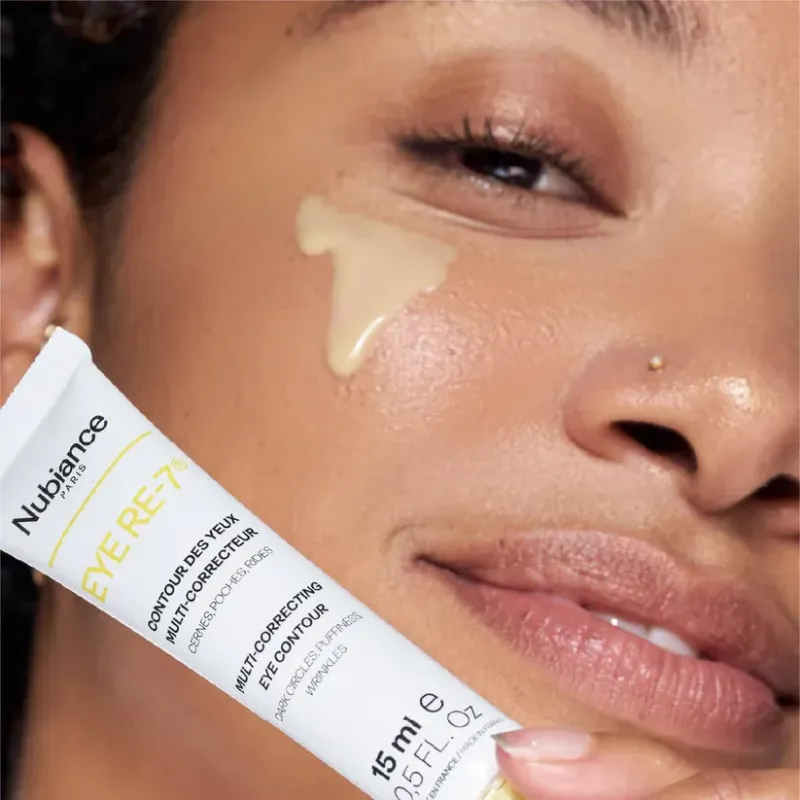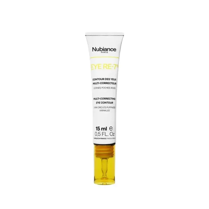 Ce soin contour des yeux est une formule multi-correctrice intensive, spécifiquement développée pour cibler les sept signes majeurs du vieillissement et de la fatigue du regard : cernes, poches, rides, ridules, perte de fermeté, déshydratation et manque d'éclat. Il repose sur l'innovation de la marque NUBIANCE et intègre des actifs puissants pour offrir une action anti-âge globale et un effet défatigant immédiat. Sa texture fine et légère pénètre rapidement, offrant un confort optimal et laissant la peau du contour de l'œil, particulièrement fragile, lissée, raffermie et visiblement plus lumineuse.