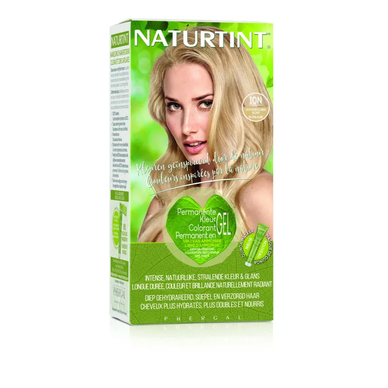 La NATURTINT Coloration Permanente 10N Blond Aube est un kit de coloration capillaire de 170 ml, conçu pour offrir une nuance de blond très clair et lumineux, proche d'un blond platine mais avec des reflets très naturels. Faisant partie de la gamme "N" (Naturel), le 10N Blond Aube assure une couleur uniforme, brillante et durable. Ce kit est élaboré avec jusqu'à 92% d'ingrédients d'origine naturelle et est formulé sans ammoniaque, sans résorcine, sans parabène et sans PPD, ce qui en fait un choix privilégié pour minimiser les irritations du cuir chevelu. Il permet une couverture des cheveux blancs jusqu'à 100% tout en respectant et en nourrissant la fibre capillaire grâce à son masque post-coloration enrichi en protéines végétales.