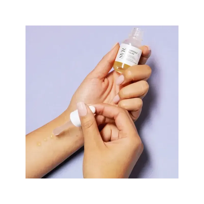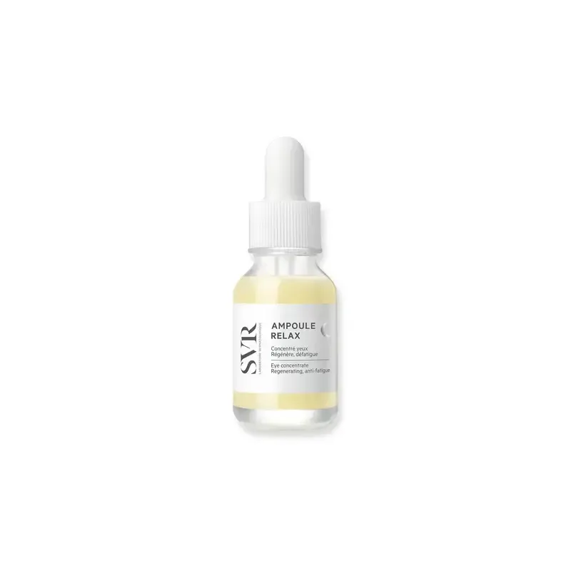 L'Ampoule Relax Night de SVR est un sérum ultra-concentré conçu pour régénérer le contour des yeux pendant la nuit, lorsque la peau est la plus réceptive. Sa formule, spécifiquement élaborée pour les peaux délicates de cette zone, combine un puissant complexe d'actifs pour agir sur les rides, les cernes et les poches. Elle est enrichie en GABA (acide gamma-aminobutyrique), un actif anti-âge qui détend et lisse la peau, et en extrait de Postbiotique, qui régénère la barrière cutanée et réduit les signes de fatigue. Sa texture gel-huile, riche et réconfortante, est rapidement absorbée, offrant une sensation de bien-être immédiate. Nuit après nuit, le regard est lissé, les cernes sont estompés et les poches diminuent, laissant une peau visiblement plus jeune et reposée.