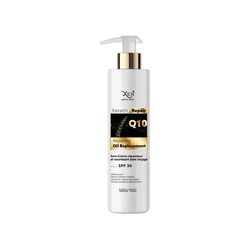 XEN KÉRATINE Q10 OIL REPAIR est un soin capillaire liquide sans rinçage, conçu pour réparer les cheveux secs, abîmés ou cassants. Sa formule innovante associe la kératine, un composant essentiel de la fibre capillaire, au Coenzyme Q10, un antioxydant puissant. La kératine aide à reconstruire et à renforcer la structure du cheveu, tandis que le Coenzyme Q10 revitalise le cuir chevelu et les follicules pileux pour une chevelure plus forte et plus saine. Ce soin liquide pénètre rapidement sans alourdir, laissant les cheveux doux, brillants et faciles à coiffer.